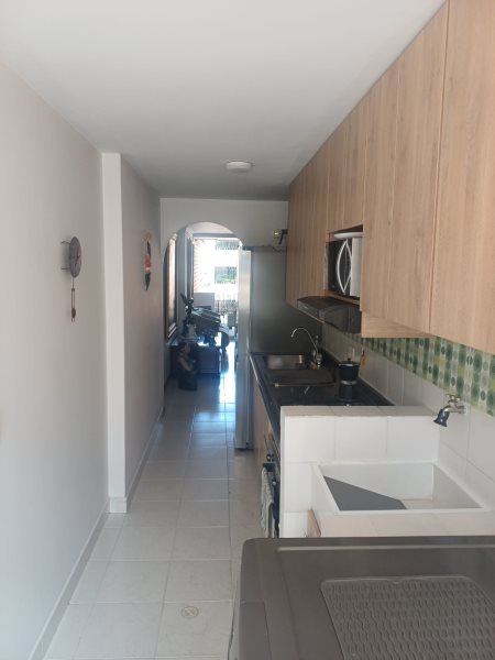 Area 115 mts, 3 alcobas, 2 baños, sala comedor, cocina integral, zona de ropas, alcoba de servicio con baño, parqueadero cubierto, piso 2 par escalas,